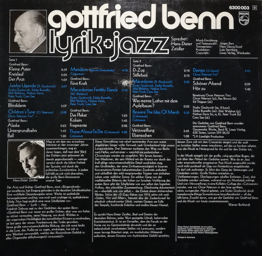 Benn* - Gottfried Benn - Lyrik + Jazz (LP, Album) (VG+ / VG+)