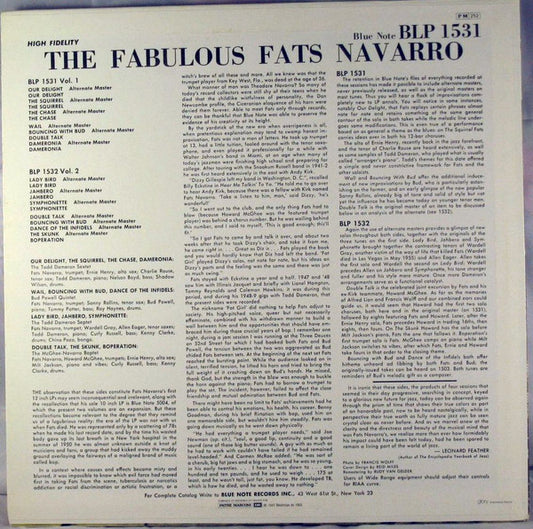 Fats Navarro - The Fabulous Fats Navarro Volume 1 (LP, Album, Mono, RE, RM) (VG+ / VG)