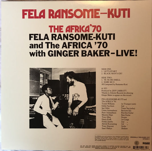 Fela Kuti, Ginger Baker, Africa 70 - Live! (LP, Album, RE) (M / M)