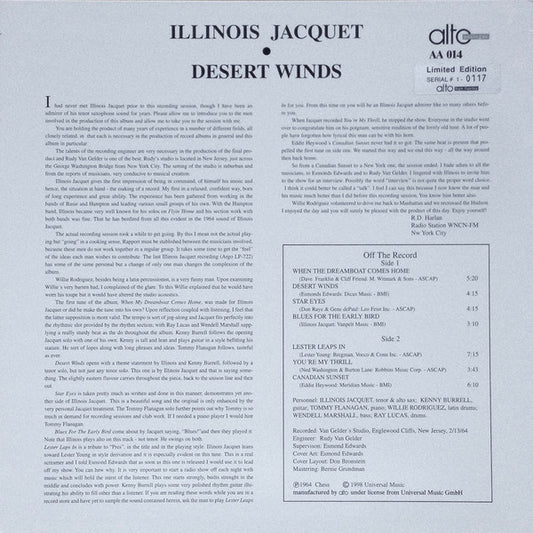 Illinois Jacquet - Desert Winds (LP, Album, Ltd, Num, 180) (VG+ / VG+)