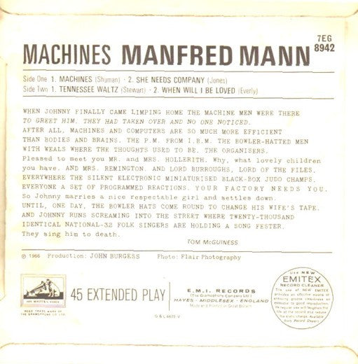 Manfred Mann - Machines (7", EP) (VG+ / VG+)