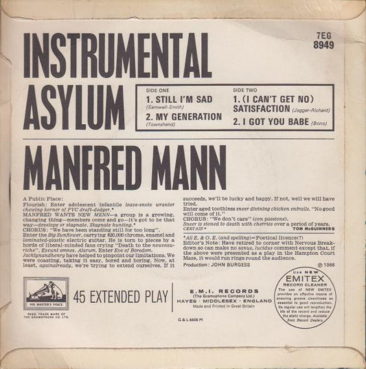 Manfred Mann - Instrumental Asylum (7", EP) (VG+ / VG+)