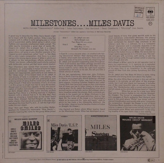 Miles Davis - Milestones (LP, Album, Mono, RE) (VG+ / VG+)