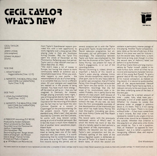 Cecil Taylor - What's New (LP, Album, RE) (VG+ / VG)