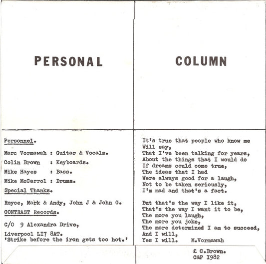 Personal Column - Ignorance Is Bliss? / Dreamer In Babylon (7", Single) (VG+ / VG)