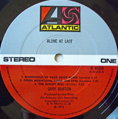 Gary Burton - Alone At Last (LP, Album) (VG+ / VG)
