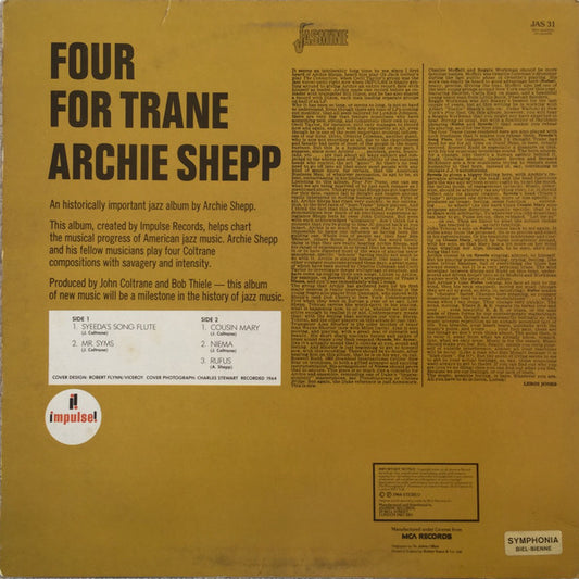 Archie Shepp - Four For Trane (LP, Album, RE) (VG+ / VG+)