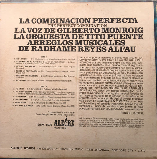Gilberto Monroig - La Combinacion Perfecta Con la Orquesta de Tito Puente (LP, Album, Mono) (VG+ / VG+)