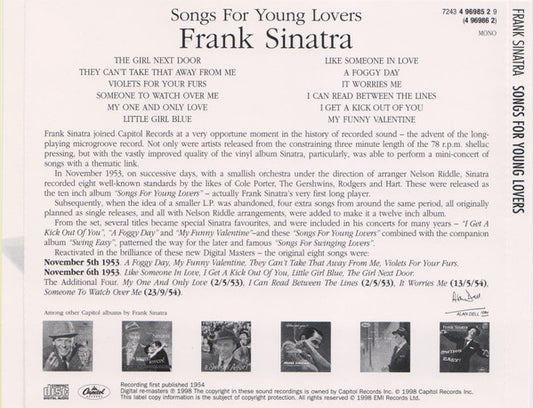 Frank Sinatra - Songs For Young Lovers (CD, Album, Mono, RE, RM) (VG+ / VG+)