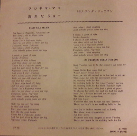 Wanda Jackson - Fujiyama Mama / No Wedding Bells For Joe (7", Single) (VG / Generic)