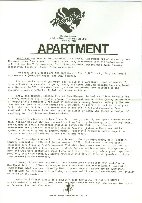 Apartment - The Car / Winter (7", Single) (VG+ / VG+)
