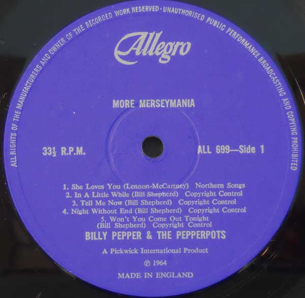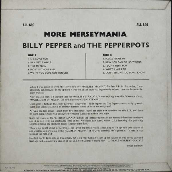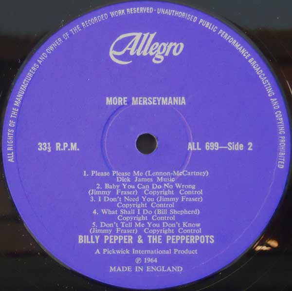 Title on rear sleeve and label: More Merseymania Band name as on labels