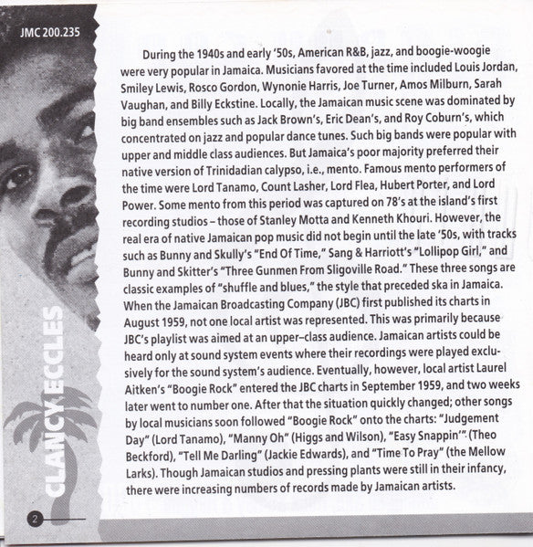 Artists are not credited on this release / Informations from the liner notes (Clancy Eccles in the late '80s).