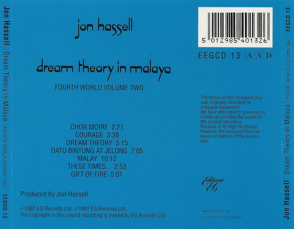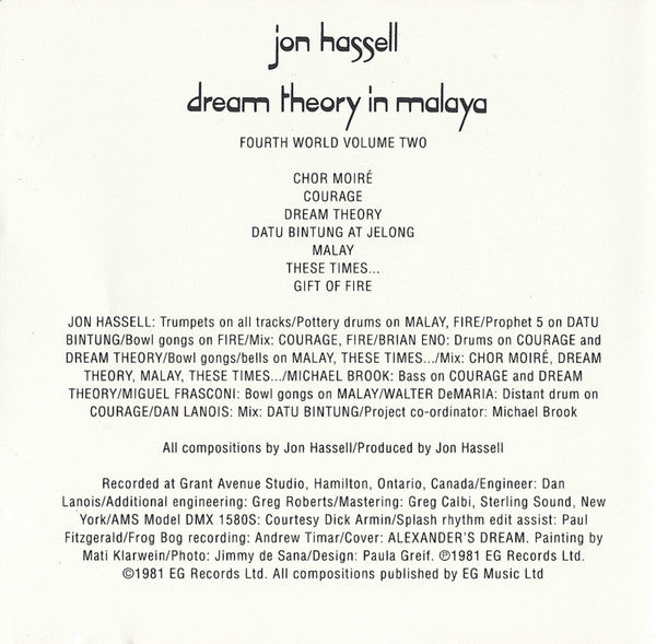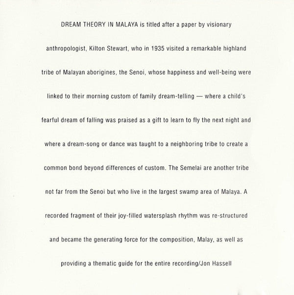 Jon Hassell - Dream Theory In Malaya (Fourth World Volume Two) (CD, Album, RE) (VG+ / VG+)