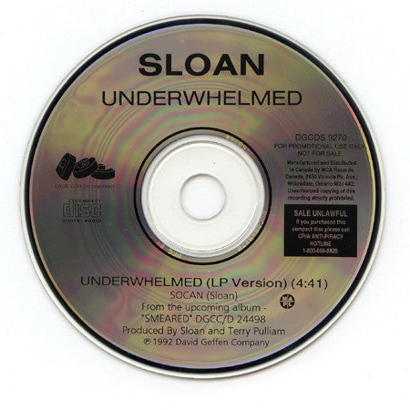 Sloan (2) - Underwhelmed (CD, Single, Promo) (VG+ / VG)