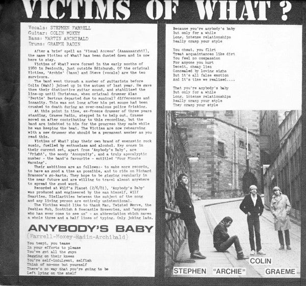 Foldout poster sleeve (when folded approx 185mm x 200mm - oversized vertically) with credits and lyrics. Comes with plain white inner with "BACKLASH!" stamped backwards in red both sides. Some copies were given away with a Glasgow fashion magazine, 'Instant Whip' #1. See Images. Playlist Records Edinburgh ℗and© 1981 Track A1 recorded at Palladium Studios. Tracks A2, 1A & 1B recorded at Wilfs Planet, and Track 1C recorded at Emblem Studios, Strathaven.